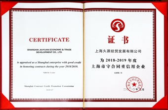 日前,鈺翔控股集團(tuán)旗下鈺翔環(huán)保供應(yīng)鏈管理(上海)有限公司、上海久源經(jīng)貿(mào)發(fā)展有限公司被評(píng)為“2018-2019年度上海市守合同重信用企業(yè)”,并榮獲AAA級(jí)合同信用等級(jí)認(rèn)定。